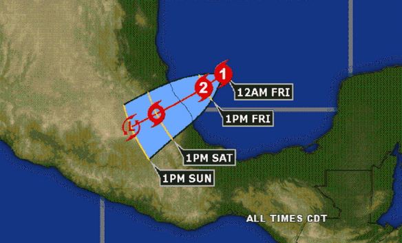 Le Mexique se prépare également à essuyer le passage de l’ouragan Katia aujourd’hui même (vendredi 8 septembre 2017) sur sa côte est. Celui-ci, bien moins puissant et volumineux que l’ouragan Irma, est pour l’instant classé en catégorie 1, mais devrait prendre de la force et atteindre le niveau 2 avant de toucher terre au niveau de l’état de Veracruz (voir carte ci-dessous).
