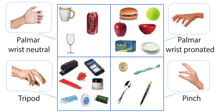 Plus de 500 objets ont été présentés au dispositif qui a intégré 72 images pour chacun d’entre eux. Les objets ont ensuite été classés dans quatre catégories différentes selon la façon nécessaire pour les saisir : avec deux doigts, trois doigts ou encore en saisie palmaire neutre et en pronation. Les résultats sont concluants puisque 85 % des objets présentés à la prothèse ont été reconnus et saisis de manière correcte.