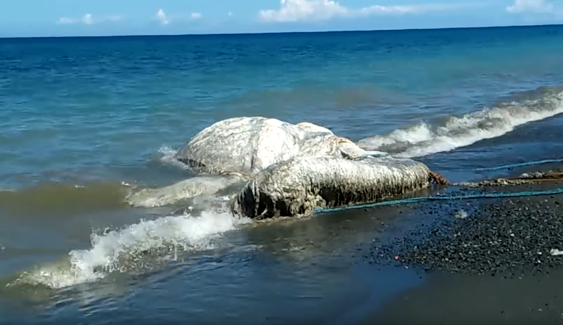 Le problème est que la carcasse est dans un tel état de décomposition que les autorités n’ont pour le moment pas été en mesure de pouvoir identifier à quelle espèce appartenait le mammifère. Nous savons néanmoins qu’il mesure environ 6 mètres de long. La créature mesure également deux mètres de large de la dorsale à la nageoire pectorale. Elle a récemment été enterrée, mais des échantillons ont été prélevés au préalable pour examen, de manière à pouvoir identifier l’espèce et la cause exacte de sa mort. C’est Vox Krusada, responsable local de l’application des lois sur les pêches, qui a prélevé les échantillons de tissus. « C’était horrible », a-t-il dit. « Ça sent quelque chose d’une autre planète. J’ai presque vomi. Je me sentais mieux après avoir pris un bain, mais la puanteur persiste toujours dans mon nez ».
