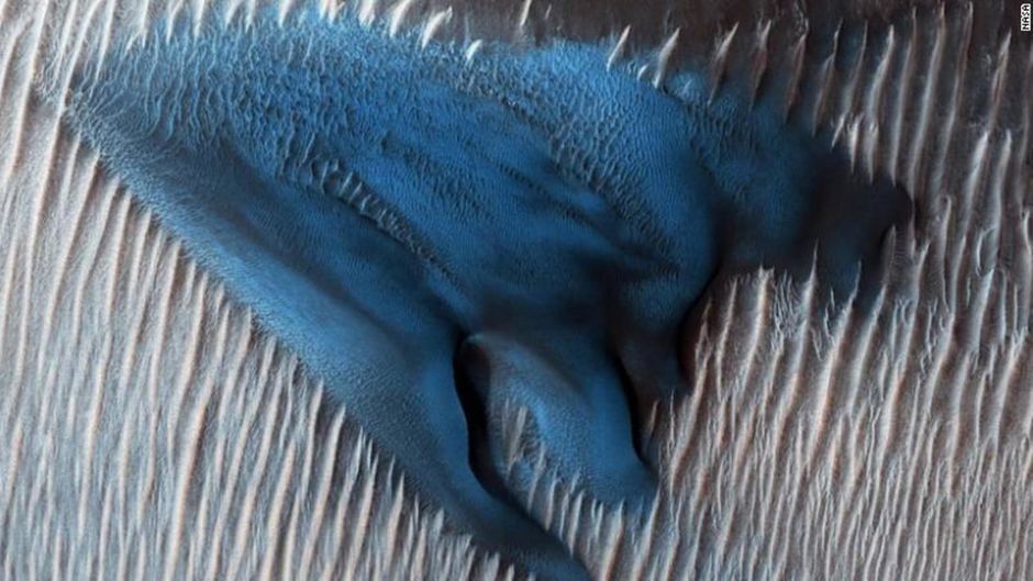 Or, une image a attiré l’attention puisqu’il s’agit d’une dune de sable de couleur bleue. En réalité, cette dune n’est pas bleue mais grise, et ceci peut s’expliquer. Contrairement aux rovers, les orbiteurs ne touchent pas le sol et surveillent la planète depuis une zone hors de son atmosphère. La caméra capte beaucoup de détails mais malgré sa puissance, elle ne peut pas tout voir en raison de l’abondance de poussière si bien que sans cette même caméra, l’œil humain ne verrait que l’équivalent d’une ardoise grise.