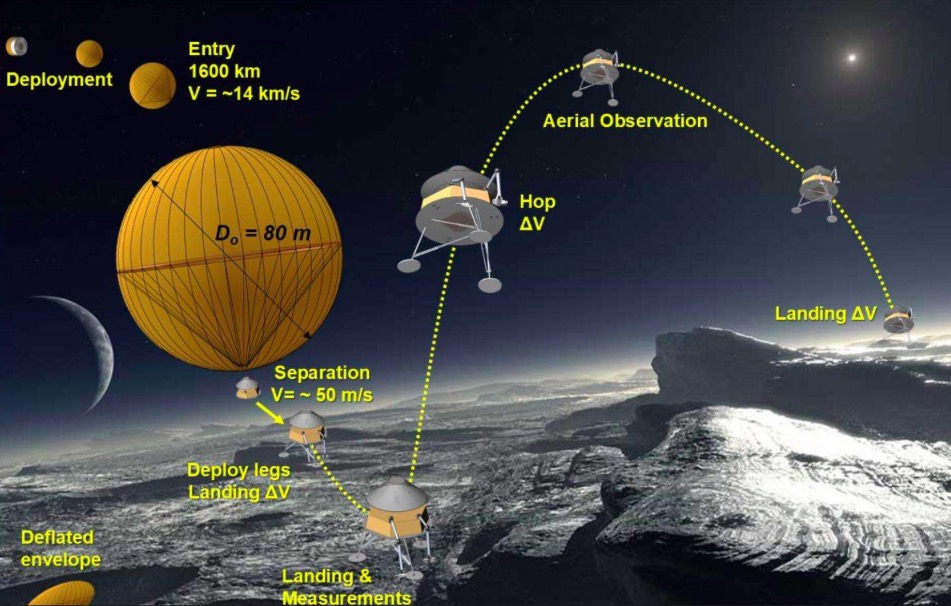 Pour poser l’atterrisseur sur Pluton, Global Aerospace étudie actuellement un système de décélération et d’atterrissage sur la planète naine. L’idée sera de ralentir la machine lancée à environ 48 000 km/h par une structure gonflable fournie par ILC Dover, un partenaire du projet. Une fois que l’appareil sera posé, les principaux objectifs de la mission seraient d’étudier l’histoire de l’évolution de Pluton, son cryovolcanisme supposé, d’étudier sa géomorphologie ou encore de rechercher d’hypothétiques traces d’eau à l’état liquide.