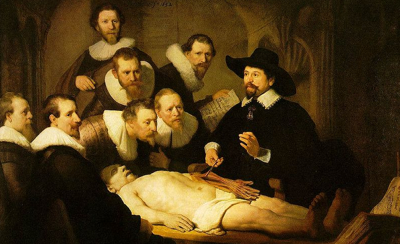 Le tableau choisi dans le cadre de l’application n’est autre que La Leçon d’anatomie du docteur Tulp, peint par Rembrandt (1607-1669). Le tableau immortalise une leçon d’anatomie donnée le 16 janvier 1632 par le professeur Nicolaes Tulp (1593-1674). À cette époque, la corporation des chirurgiens d’Amsterdam (Pays-Bas) – dont Nicolaes Tulp faisait partie – n’autorisait qu’une dissection publique par an. De plus, le corps utilisé devait être celui d’un condamné à mort et dans ce cas, il s’agissait de celui d’Aris Kindt, un homme de 41 ans pendu le jour même pour vol.