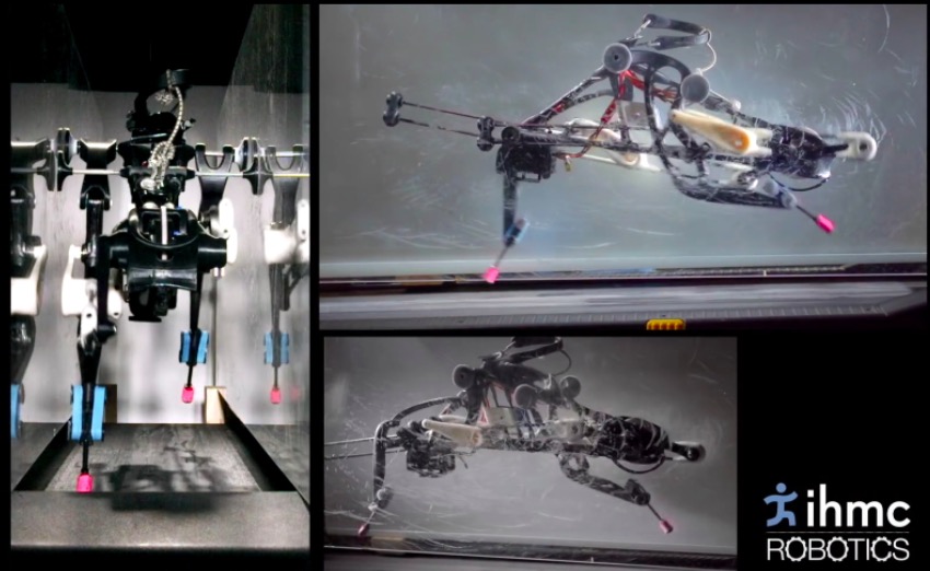 Il s’avère que pour l’instant, le Planar Elliptical Runner peut courir seulement en étant « calé » entre deux plaques de verre, évitant ainsi sa chute sur un côté. Cependant, la vidéo à visionner en fin d’article montre qu’au moins, le robot placé sur le tapis roulant ne bascule ni en avant ni en arrière, un bon début !
