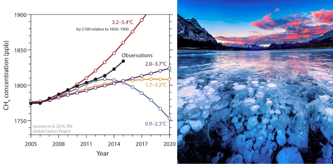Depuis 2007, il s’avère que la concentration de méthane dans l’atmosphère atteint chaque année au minimum cinq parties par milliard (ppb/an) et l’Agence américaine des océans et de l’atmosphère (NOAA) indique des taux de 12,7 ppb/an en 2014 et de 9,45 ppb/an en 2016.