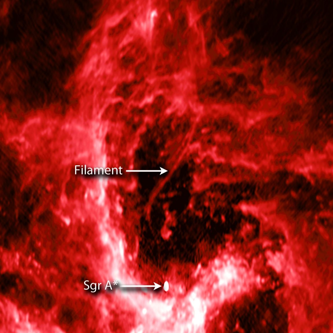 Ce qui rend ce filament particulièrement inhabituel, c’est qu’il semble « chatouiller » l’horizon des événements de Sagittaire A * (Sgr A *), le trou noir gargantuesque occupant le centre de notre galaxie, 4 millions de fois plus lourd que notre Soleil .