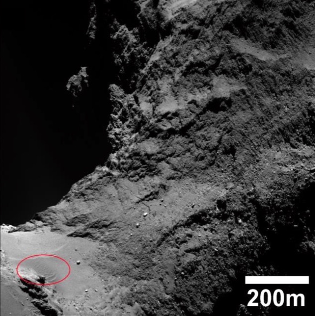 Dans un communiqué, des chercheurs du laboratoire physique et mécanique des milieux hétérogènes (CNRS/ESPCI Paris/UPMC/Université Paris Diderot) expliquent avoir analysé les clichés de la comète Tchouri puis modélisé le dégazage de vapeur. Conclusion : la forte différence de pression entre la face au soleil de la comète et celle à l’ombre provoque des vents capables de transporter des grains et de façonner des dunes.