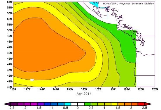 Une immense masse d’eau chaude appelée « Blob » qui s’étend du Mexique à l’Alaska inquiète biologistes et scientifiques. Ce phénomène serait responsable du dérèglement de toute la chaîne alimentaire des océans et de la mort d’une vingtaine de baleines échouées sur les plages de la Colombie-Britannique et de l’Alaska depuis mai dernier.