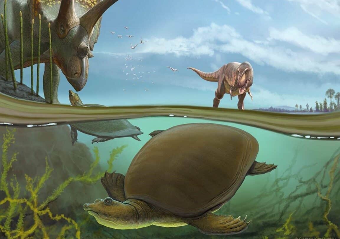 Une équipe de scientifiques décrit une nouvelle espèce de tortue molle ayant évolué à la fin du Crétacé aux côtés du Tyrannosaurus rex et du Triceratops, entre autres dinosaures. La découverte fournit une compréhension plus large de ces reptiles, y compris sur l’effet de l’événement d’extinction sur leur évolution.