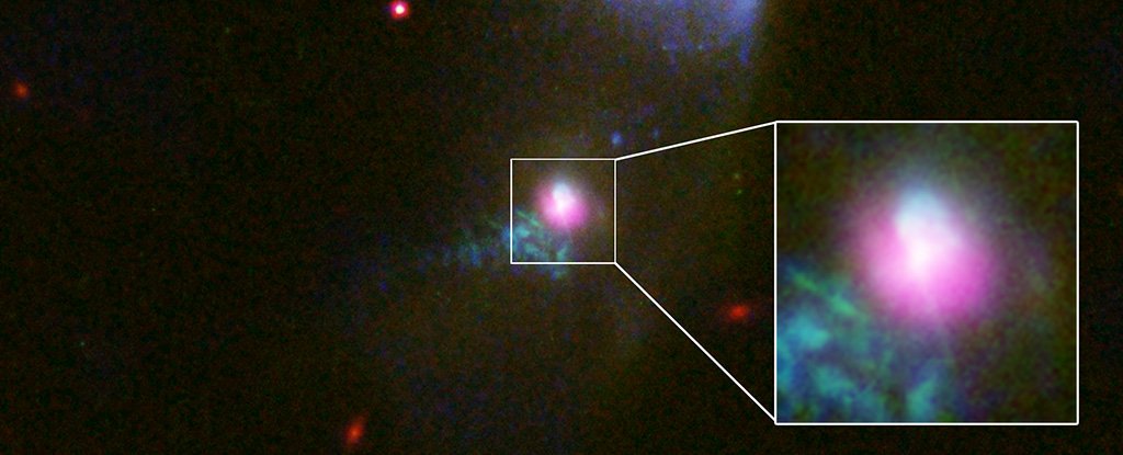 Le trou noir en question est une bête supermassive que vous retrouverez au centre d’une galaxie appelée SDSS J1354 + 1327, ou simplement J1354, située à environ 800 années-lumière de la Terre. Ce trou noir semble ici se délecter de la matière émise par une galaxie voisine. L’équipe de Comerford a ici combiné des images de l’observatoire à rayons X Chandra et du télescope spatial Hubble pour localiser deux bulles de gaz émergées : l’une au-dessus du trou noir et l’autre en dessous. Le plus vieux « rot » s’est étendu à 30 000 années-lumière du trou noir, tandis que le plus récent n’apparaît que jusqu’à 3 000 années-lumière de l’objet. Ces deux « rots » auraient par ailleurs été émis à environ 100 000 ans d’intervalle.