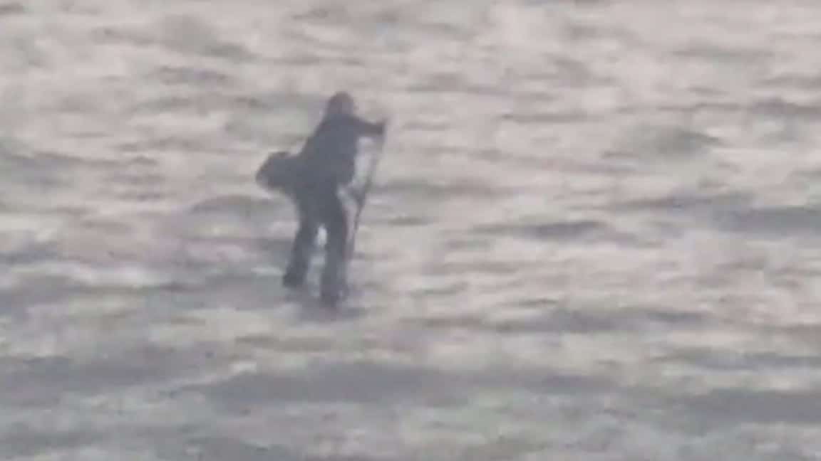 Une femme traversant l’Hudson en ferry a aperçu à l’extérieur un homme en costume effectuant la même traversée en paddle. L’individu se tenait en effet debout sur sa planche et pagayait pour avancer.