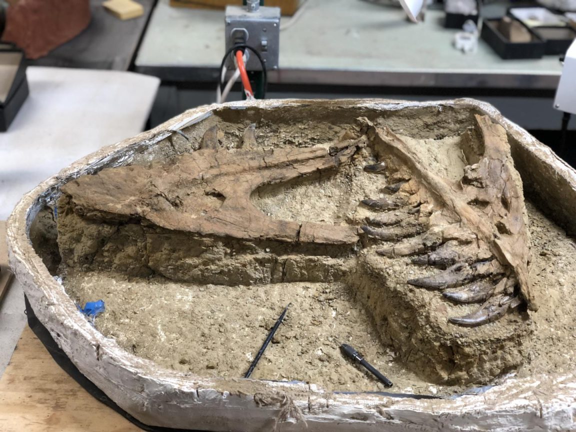 Les chercheurs ont découvert les restes de la redoutable bête dans la fameuse formation Hell Creek du Montana, une étendue rocheuse pleine de fossiles de dinosaures. De tous les T-Rex juvéniles de Hell Creek, celui-ci est probablement le « mieux conservé et le plus complet », note Kyle Atkins-Weltman, du muséum d’histoire naturelle de l’Université du Kansas. Le fossile du jeune T-Rex a été retrouvé en juin 2016, mais l’équipe n’a eu le temps que de déterrer l’ilium du dinosaure (la partie supérieure de l’os iliaque), avec toutes les dents intactes (certaines de 5 centimètres de long), ainsi que des morceaux de l’une de ses pattes et de ses hanches. Les plaques de roche excavées comprennent également une tortue presque complète et des morceaux de poisson et d’autres dinosaures. Les chercheurs ont également retrouvé la mâchoire d’un mammifère placentaire.