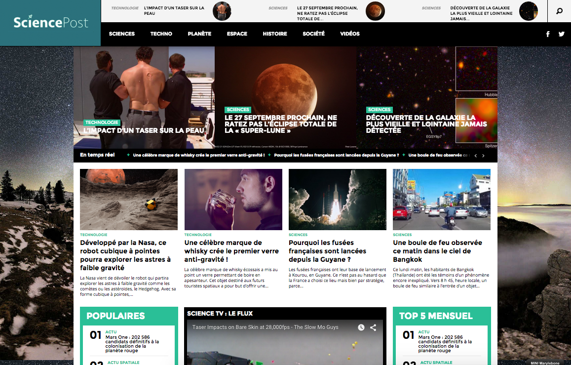 Nous avions d’abord à l’esprit d’améliorer l’expérience mobile et de rendre le parcours du site plus intuitif. La page d’accueil a ainsi été retravaillée de manière à accueillir de nouveaux modules comme les dernières informations heure par heure, les articles populaires du mois ou encore l’ajout de la Science TV. Cette dernière compilera les dernières vidéos à voir dans le domaine des sciences et nouvelles technologies.