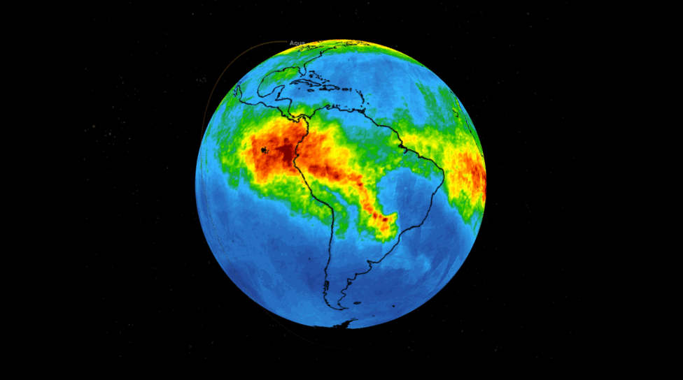 Dans une publication du 24 août 2019, l’Agence spatiale américaine (NASA) a dévoilé une carte animée représentant la Terre centrée sur l’Amérique du Sud. Celle-ci montre l’évolution des émissions de CO engendrées par les incendies ravageant la forêt amazonienne depuis plusieurs semaines. Plus précisément, la carte montre les émissions qui se sont produites du 8 au 22 août 2019.