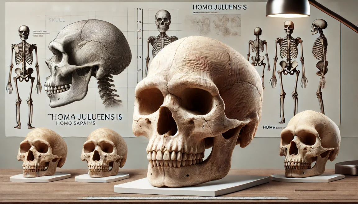 L’une des particularités majeures des fossiles attribués à Homo juluensis est la taille de leur crâne. Leur capacité cérébrale est estimée à 1 800 cm³, contre 1 350 cm³ pour un Homo sapiens moderne.