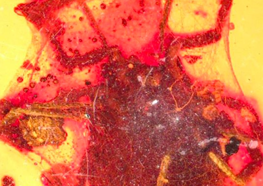 Des traces de toiles d’araignées contenant des insectes avaient déjà été retrouvées; les fossiles contenant les restes de tiques préservés sont néanmoins très rares. Ce que nous apprend ce fossile – retrouvé dans le nord du Myanmar puis fourni au Musée d’histoire naturelle de Berlin par le collectionneur allemand Patrick Müller – c’est que les tiques étaient déjà capturées par les araignées au Crétacé. C’est « la première fois que cette interaction spécifique entre les tiques et les araignées est documentée dans les archives fossiles« , écrivent les auteurs de cette nouvelle étude. En regardant de près les fins filaments qui enveloppent encore la tique, les chercheurs ont été en mesure de confirmer l’emballage en soie d’araignée.