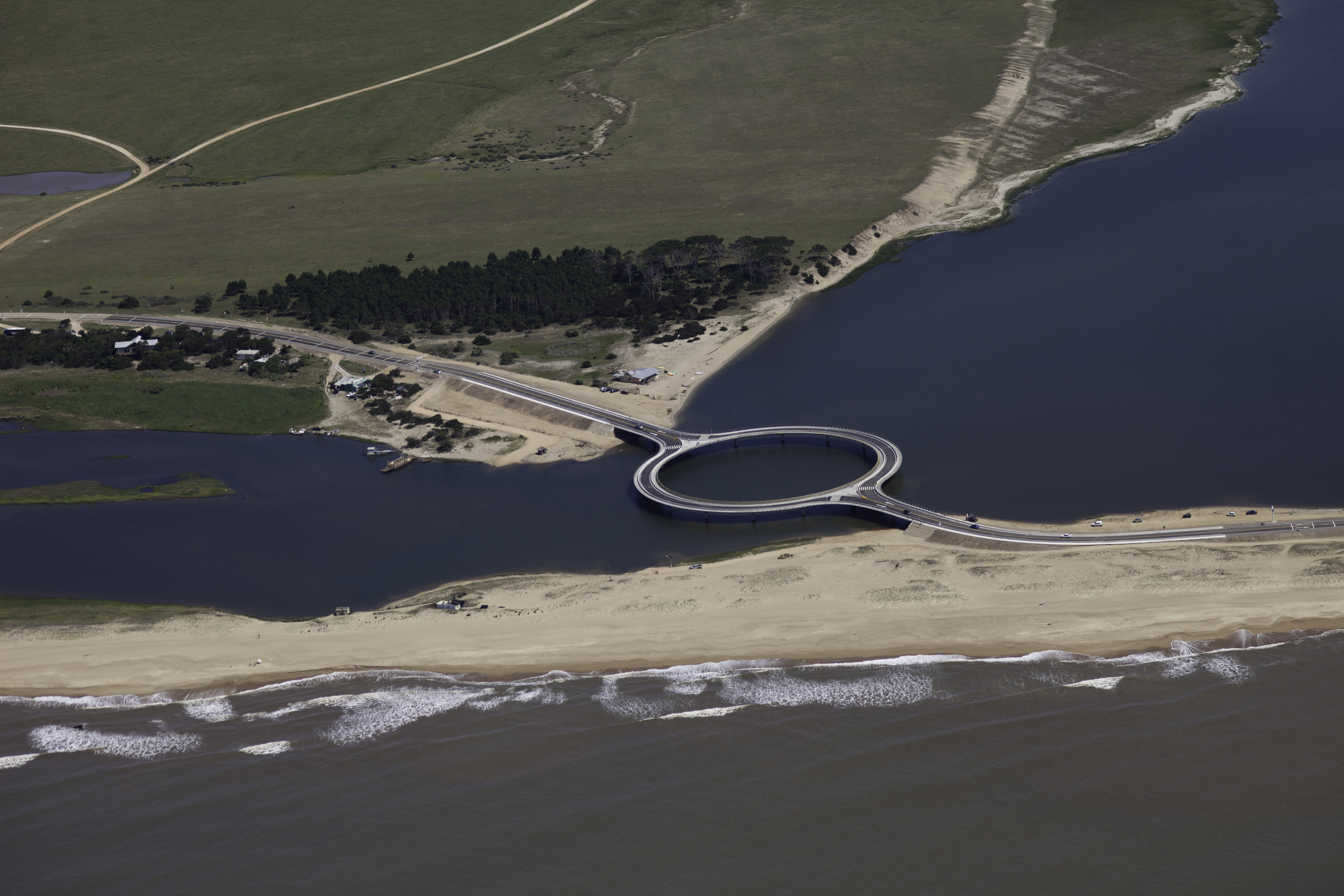Baptisé Laguna Garzon, le pont circulaire est en place depuis fin 2015, pour des travaux débutés en 2013 (durée : 16 mois). Il se trouve à moins de 100 km à l’est de la capitale de l’Uruguay, Montevideo, et relie les deux petites villes de Maldonado et Rocha.