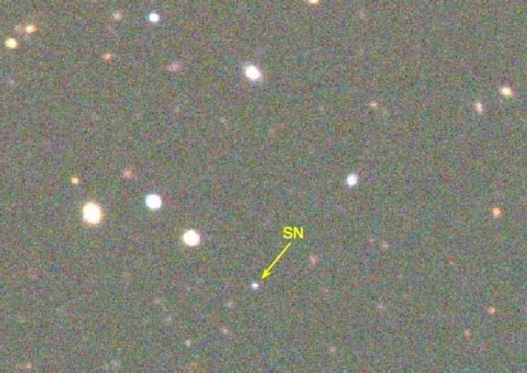 La mort d’une étoile massive dans une galaxie située à 10 milliards d’années-lumière aura mené à la découverte de l’une des supernovae les plus éloignées et brillantes jamais découvertes. Ce feu d’artifice cosmique, plus de trois fois plus brillant que les 100 milliards d’étoiles de notre galaxie réunies, s’est produit environ 3,5 milliards d’années après le Big Bang lors d’une période connue sous le nom de « haut-midi cosmique », lorsque le taux de formation d’étoiles dans l’univers avait atteint son maximum.