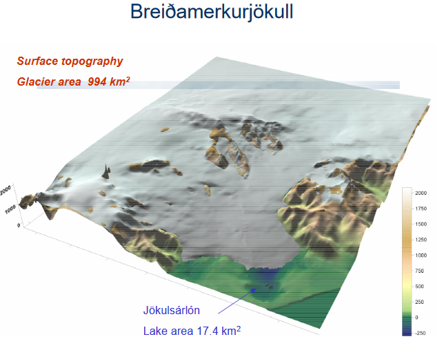 Le Breiðamerkurjökull est un glacier d’Islande situé dans la partie sud-est du pays. Considéré comme une des principales attractions touristiques d’Islande, il n’est autre qu’une « langue glaciaire » du Vatnajökull. Il s’agit de la plus grande calotte glaciaire d’Islande et d’une des plus impressionnantes d’Europe. Le front glaciaire très étendu du Breiðamerkurjökull fond depuis déjà plusieurs décennies, et a donné naissance à deux lacs dans lesquels barbotent quelques icebergs : la Breiðárlón et la Jökulsárlón. En revanche, ce glacier d’une hauteur de plus de 750 mètres pour une superficie frôlant les 1000 km² est en train de disparaître progressivement. Selon certains spécialistes ayant mené une étude en 2010, le glacier devrait disparaître dans 200 ans.