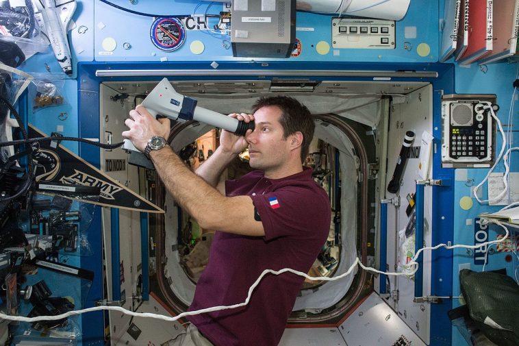 Petit indice de la vie en pesanteur : un mur décoré de fournitures de bureau et d’objets divers et variés fixés solidement à leur place ! On note aussi un petit clin d’œil à cette période festive avec un calendrier de l’avent exposé bien en évidence sur le mur. Enfin pour répondre à la question de la manière dont ils dorment là-haut, il semblerait que leur sommeil soit plutôt bon pour Thomas Pesquet qui en profite pour nous montrer le duvet dans lequel il enfile les bras. De quoi s’imaginer un peu plus clairement la fin d’une journée de travail dans l’espace !