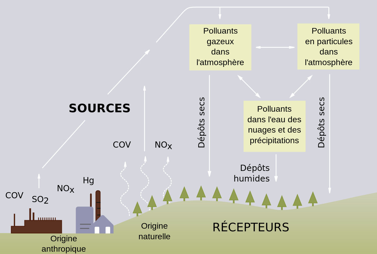 La pollution atmosphérique incarne la principale cause des pluies acides. Les gaz présents dans l’air se diluent en partie dans les gouttes de pluie, comme c’est le cas du CO2 qui se change en acide carbonique. C’est pour cette raison que la pluie est naturellement acide. En revanche, lorsque la quantité de polluants dans l’air augmente, cela se ressent sur le pH de l’eau de pluie. Or, les activités humaines et leurs rejets ont massivement augmenté durant le siècle dernier, ajoutant à l’acide carbonique d’autres acides tels que l’acide nitrique et l’acide sulfurique.