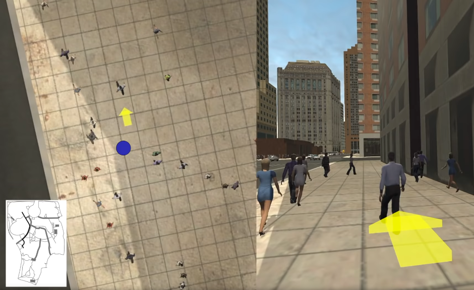 Autrement dit, l’utilisateur peut connaître sa position dans l’environnent réel et se déplacer aisément dans son monde virtuel. Surtout, le système détecte les obstacles et peut s’adapter à la réalité en générant des objets, des piétons etc. En somme l’utilisateur est guidé par le système d’une manière qui était encore inédite jusqu’à aujourd’hui.